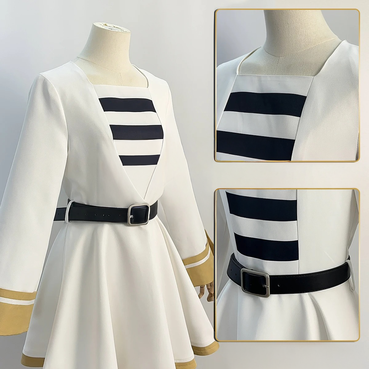 Snít o cosplayi mocné, ale okouzlující čarodějky z Sousou no Frieren? Tato sada je věrným ztvárněním kostýmu Frieren – ideální volba na konventy, fotografické sezení nebo do sbírky každého fanouška. Jemná bílá s elegantními zlatými detaily a charakteristickými pásy je stylizace, která přitahuje pohledy.
