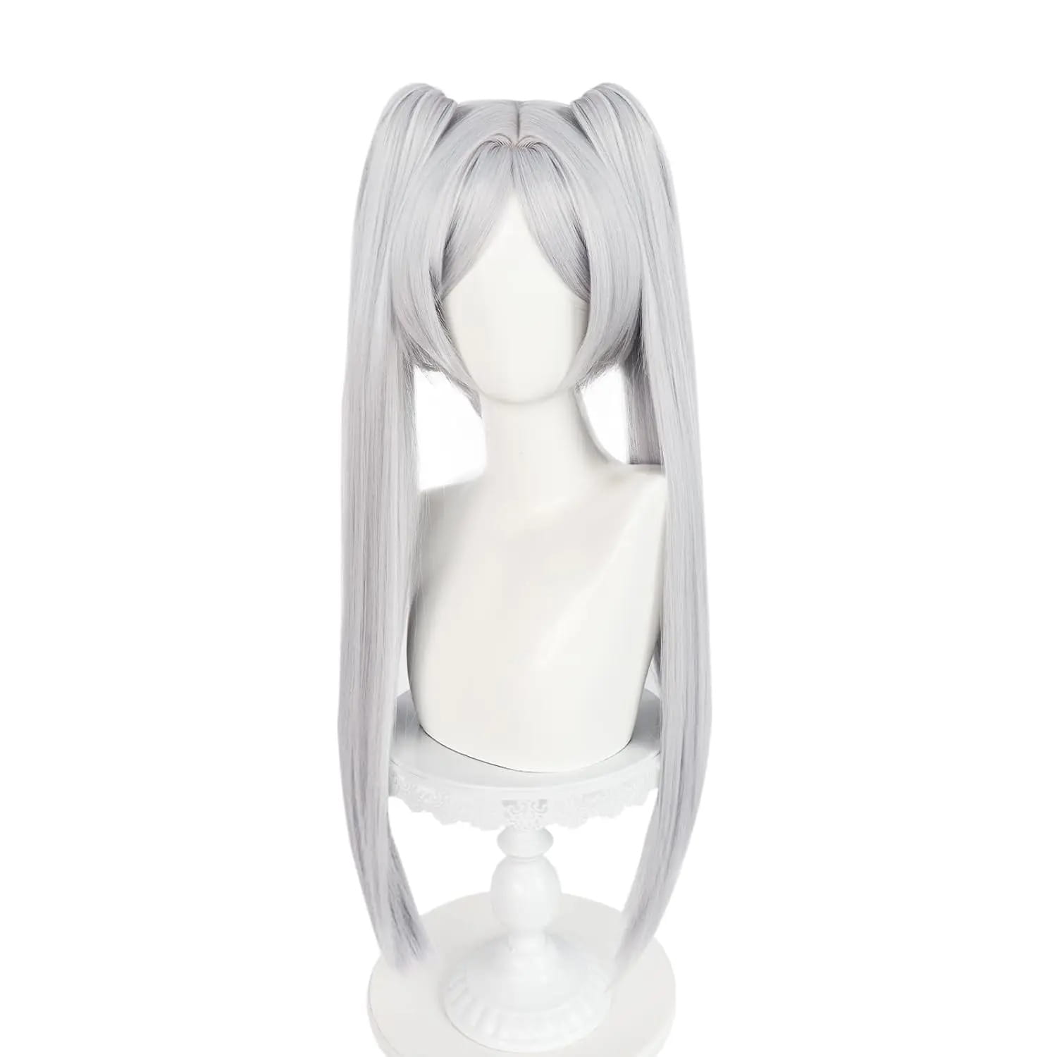 - Paruka ve stříbrno-bílé barvě, stylizovaná na účes Frieren